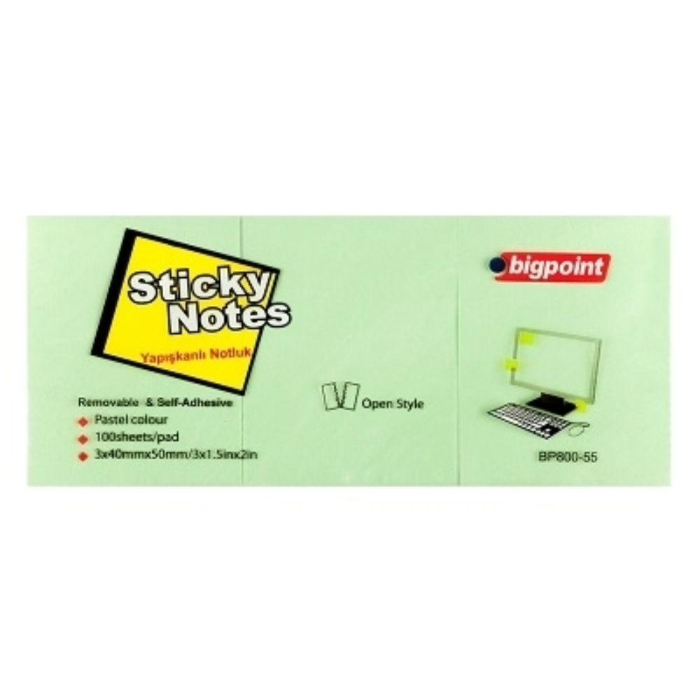 Bigpoint BP800 Yapışkanlı Not 40X50 3'lü Yeşil için şimdi sipariş verin, rekabetçi fiyat ve hızlı teslimat avantajı ile siparişiniz kapınıza gelsin.