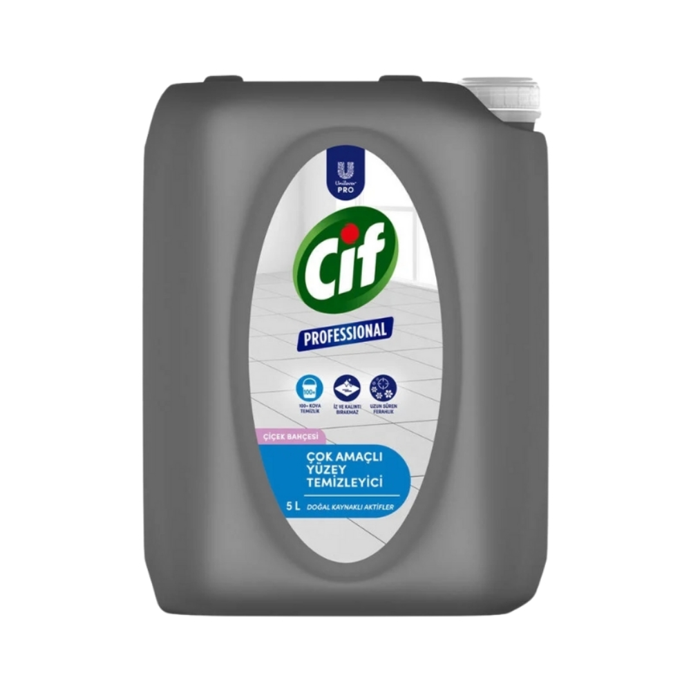Profesyonel temizlikte vazgeçilmeziniz olacak Cif Professional Çok Amaçlı Yüzey Temizleyici zahmetsizce uygulanır, kolay durulanır, hızlıca kurur. Böylece zaman ve enerji tasarrufu sağlar.