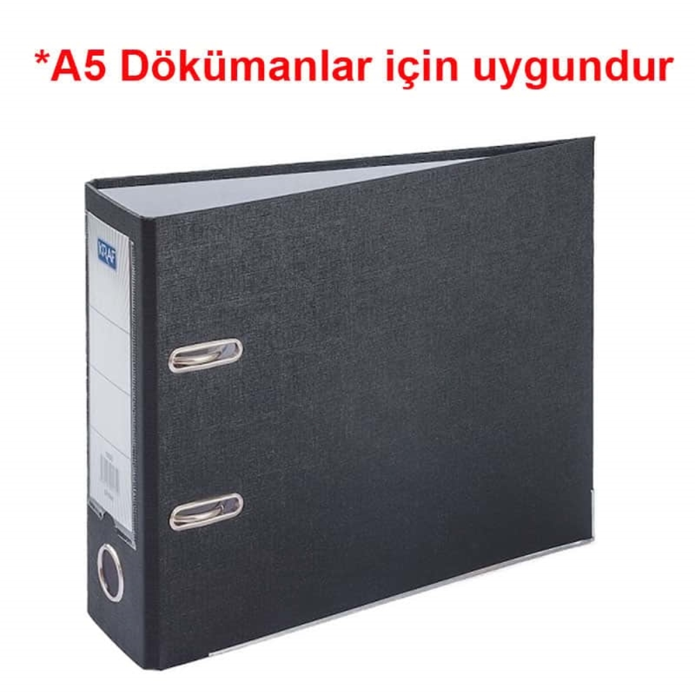 Sert dış kaplaması sayesinde hiçbir belgenizin ezilmesine ya da deforme olmasına izin vermeyen bu dosya klasörü, kaliteli malzemesiyle çok uzun süre kullanım imkanı sunar. A5 ölçülerindeki kağıtlarınız ve dökümanlarınız için rahat dosyalama imkanı sağlar. A5 dökümanlar A4'ün yarısı boyutundadır. Kaliteli mekanizmaya sahiptir. Altta metal çıta ve şeffaf etiketlik bölümü bulunmaktadır.