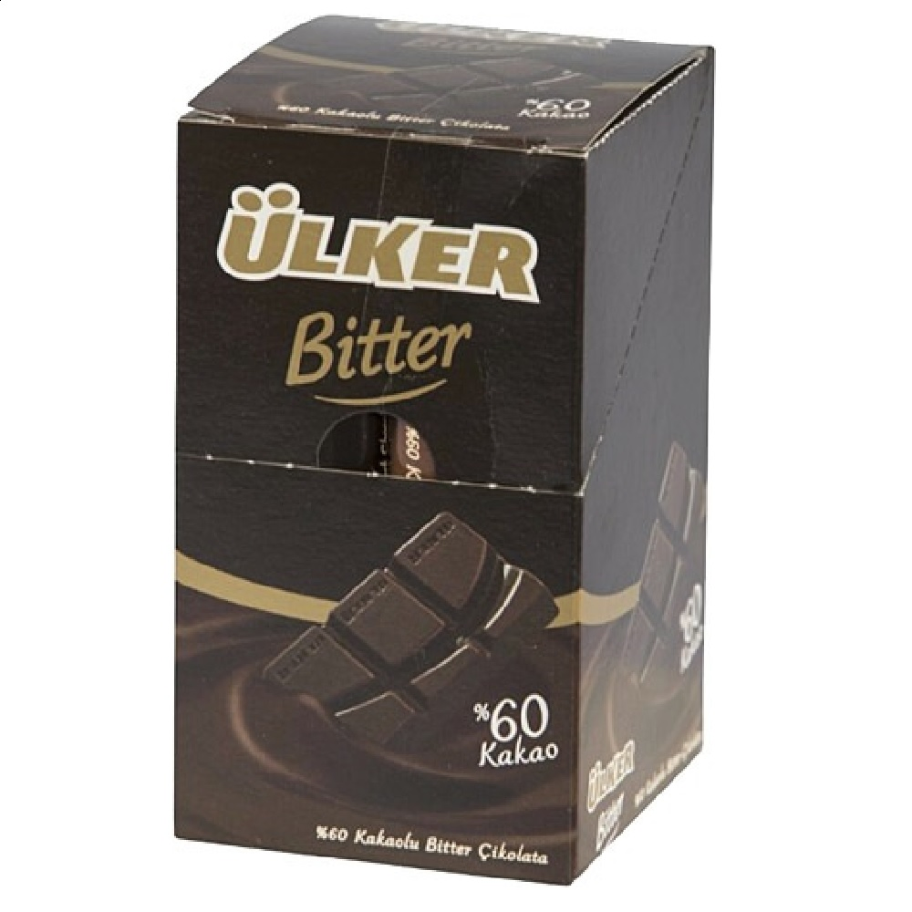 Ülker Çikolata Bitter ağızda dağılan yumuşak bir çikolata çeşidi. Kakao aromasını ve tadını diğer çikolatalara nazaran çok daha yoğun hissedebiliyorsunuz. Ürünü hazırladığınız tatlıları süslemek ya da daha leziz kılmak için de kullanabilirsiniz.